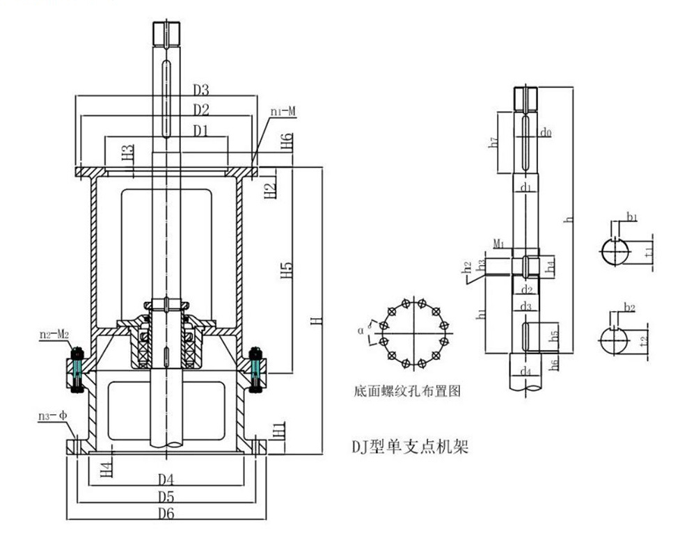 Main parameters and dimensions of DJ type single-point support frame