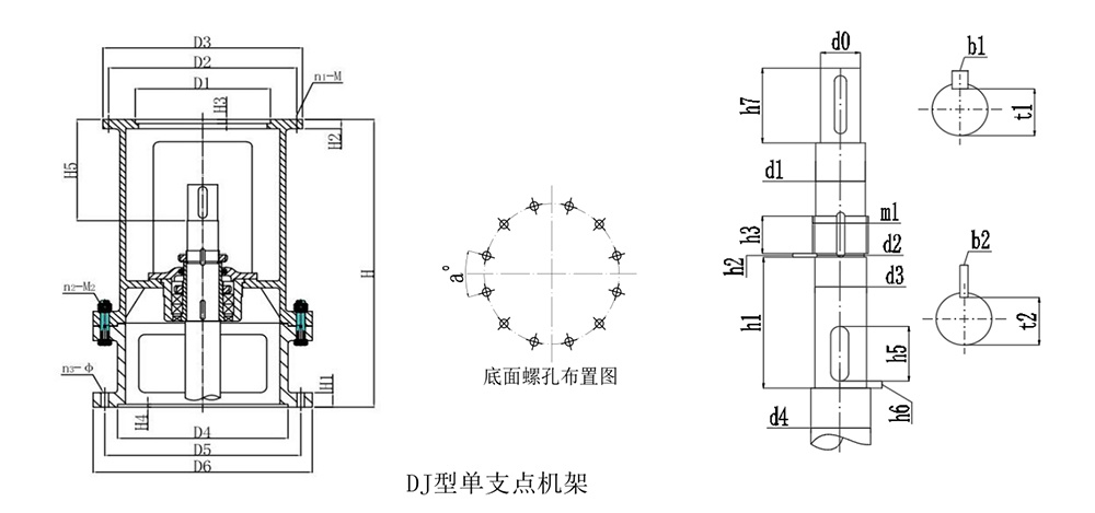 Main parameters and dimensions of DJ type single-point support frame